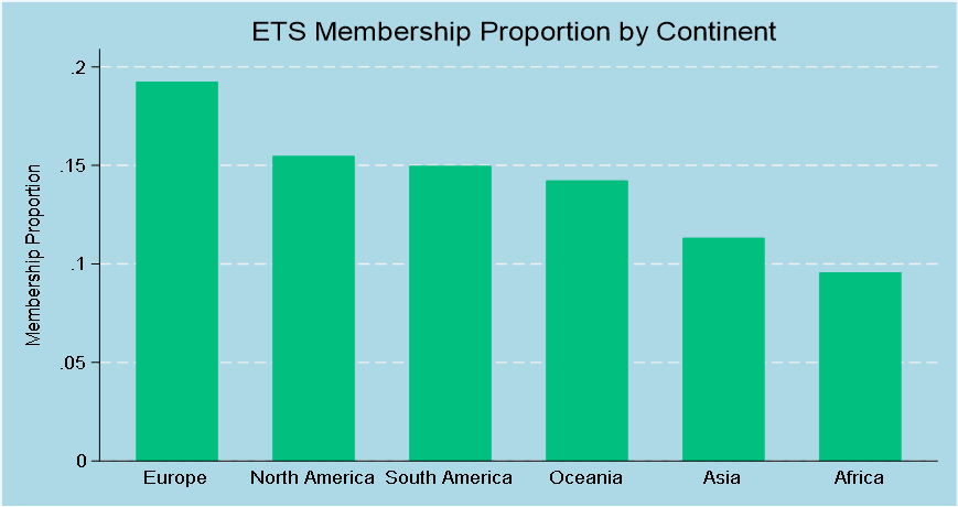 In our recent study in Business Strategy and the Environment, we sought to establish the influence of CEO power on the decision to take part in an emissions trading scheme (ETS). We use CEO duality, i.e., whether the CEO is also the chairman of the board as our proxy for CEO power. Duality is almost extinct in the UK due to corporate governance codes but is still prevalent, although falling in the USA. About 40% of US CEOs are also the chair according to recent data. This gives dual CEOs considerable power over decision-making in companies in which such a structure is present. Our study examines whether this power results in lower engagement with ETSs across a large sample of global companies. Figure 1 and Figure 2 show the prevalence of ETS membership across continents and countries.